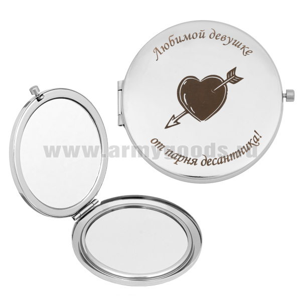 Зеркало карманное с лазерной гравировкой Любимой девушке от парня десантника!