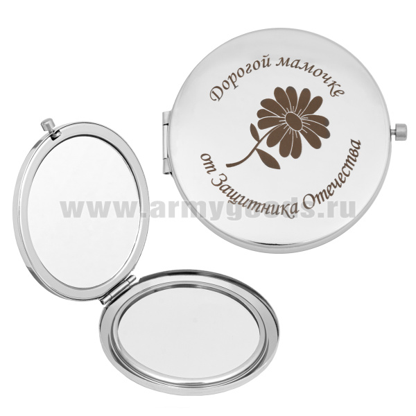 Зеркало карманное с лазерной гравировкой Дорогой мамочке от Защитника Отечества