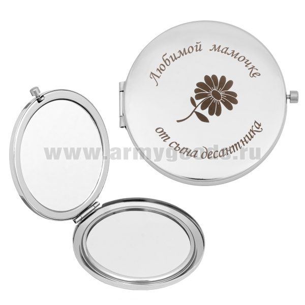 Зеркало карманное с лазерной гравировкой Любимой мамочке от сына десантника