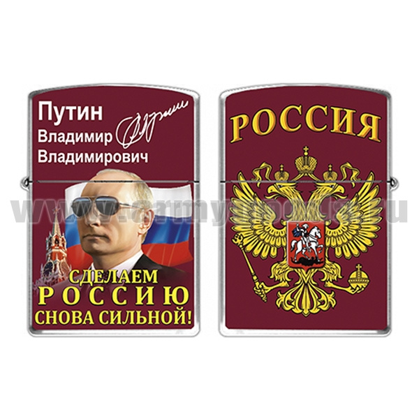 Зажигалка бензиновая цветная Сделаем Россию снова сильной! (Путин В.В.)