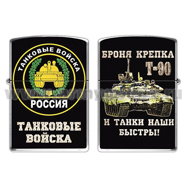 Зажигалка бензиновая цветная Танковые войска (Т-90) Броня крепка и танки наши быстры!