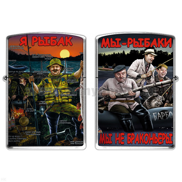 Зажигалка бензиновая цветная Я рыбак (Мы рыбаки мы не браконьеры)