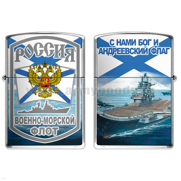 Зажигалка бензиновая цветная ВМФ (С нами Бог и Андреевский флаг)
