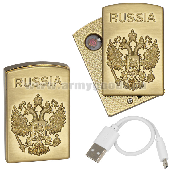 Зажигалка спиральная со шнуром USB RUSSIA (герб) со смещением