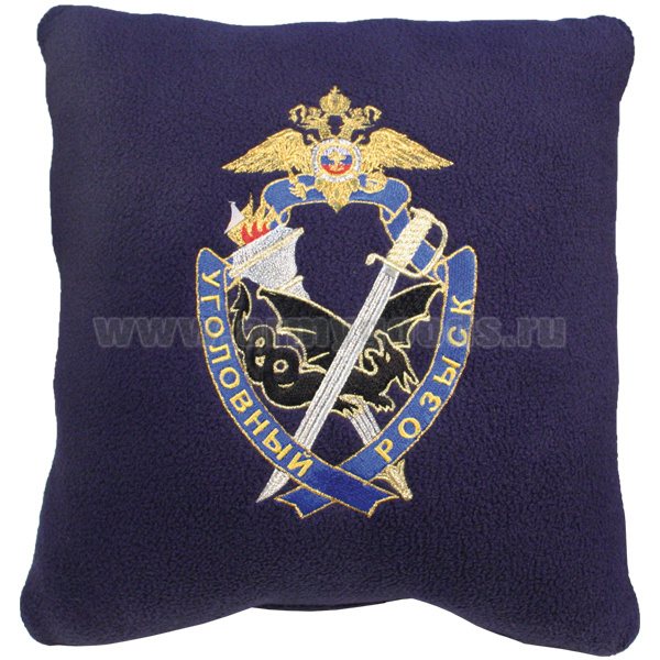 Подушка сувенирная вышитая (30х30 см) Уголовный розыск МВД России (крест) синяя