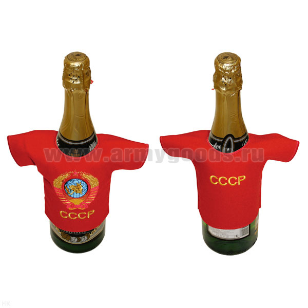 Рубашечка на бутылку сувенирная вышитая СССР (герб) красная