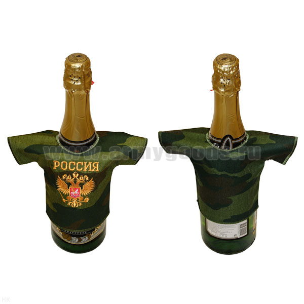Рубашечка на бутылку сувенирная вышитая Россия (орел) кмф