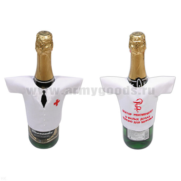 Рубашечка на бутылку сувенирная вышитая Медик (Доктор рекомендует...)