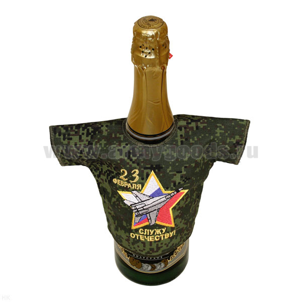 Рубашечка на бутылку сувенирная вышитая 23 февраля Служу Отечеству! (самолет) "русская цифра"