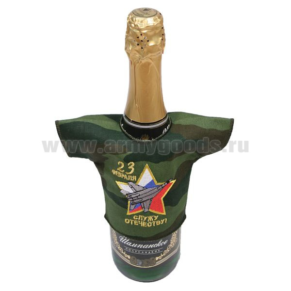 Рубашечка на бутылку сувенирная вышитая 23 февраля Служу Отечеству! (самолет) "флора"