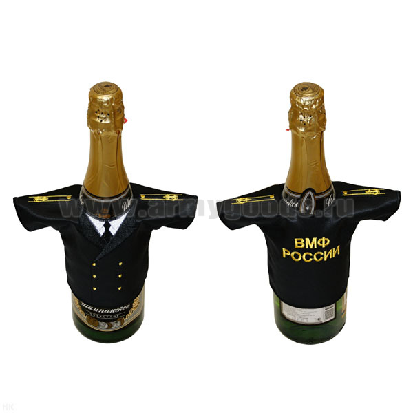 Рубашечка на бутылку сувенирная вышитая ВМФ России (черная с якорем на погонах)