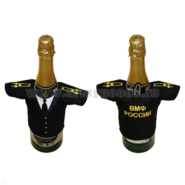 Рубашечка на бутылку сувенирная вышитая ВМФ России (черная с погонами капитана 1 ранга)