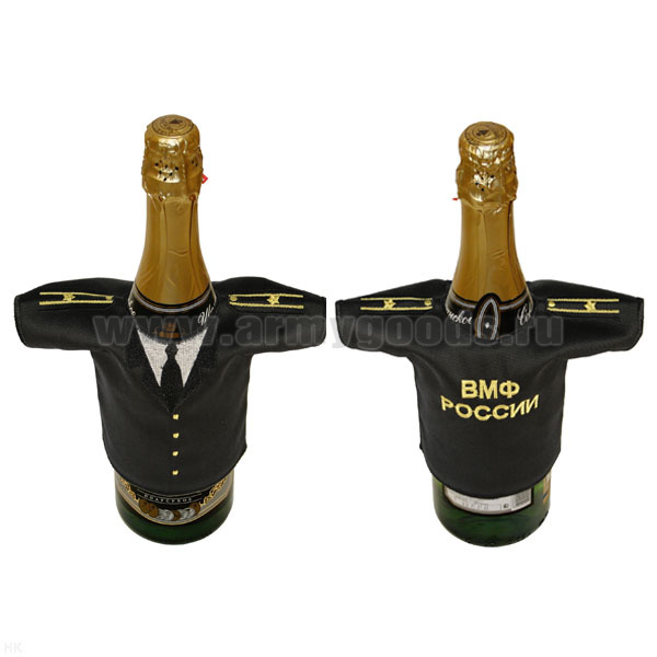 Рубашечка на бутылку сувенирная вышитая ВМФ России (черная с погонами капитана 3 ранга)