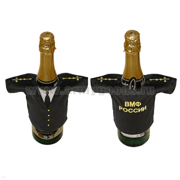 Рубашечка на бутылку сувенирная вышитая ВМФ России (черная с погонами капитана-лейтенанта)