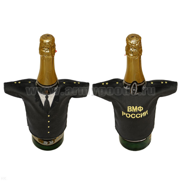 Рубашечка на бутылку сувенирная вышитая ВМФ России (черная с погонами мичмана)