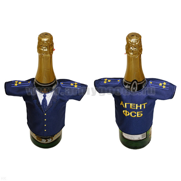 Рубашечка на бутылку сувенирная вышитая Агент ФСБ (синяя)