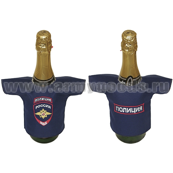Рубашечка на бутылку сувенирная вышитая Полиция (шеврон) темно-синяя
