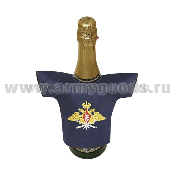 Рубашечка на бутылку сувенирная вышитая Воздушно-космические силы (синяя)