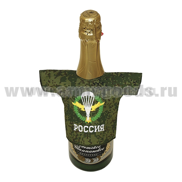 Рубашечка на бутылку сувенирная вышитая Россия (с эмбл. ВДВ) "русская цифра"