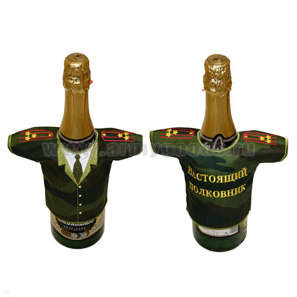 Рубашечка на бутылку сувенирная вышитая Настоящий полковник (кмф)