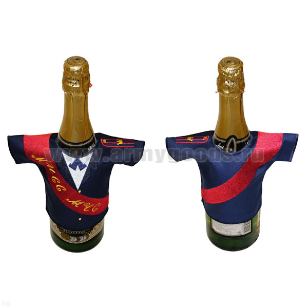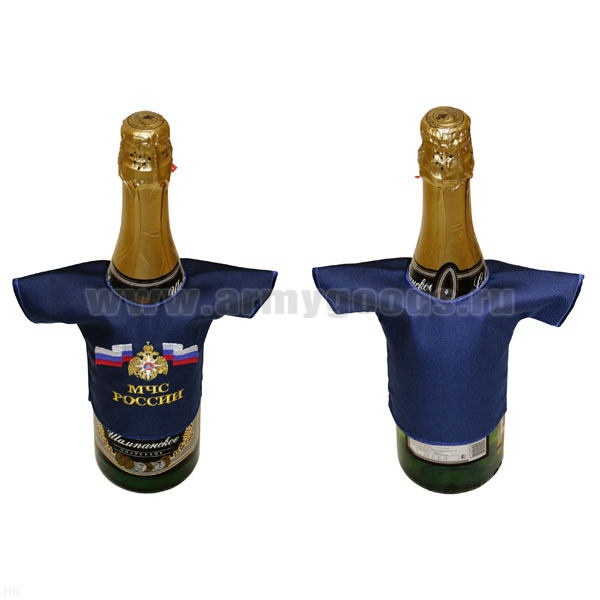 Рубашечка на бутылку сувенирная вышитая МЧС России (синяя)