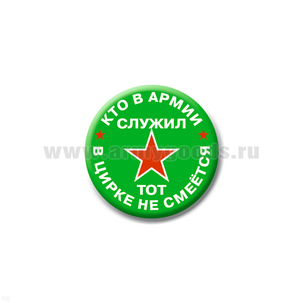 Значок сув. пласт. мал. Кто в армии служил, тот в цирке не смеется