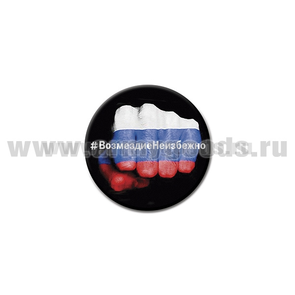 Значок сув. пласт. мал. Возмездие неизбежно (кулак)