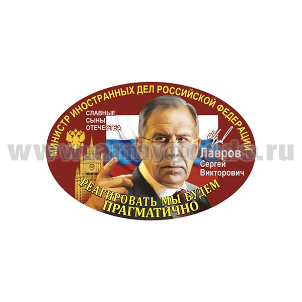 Наклейка овальная Реагировать мы будем прагматично (Лавров С.В.) (15x10 см)