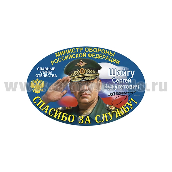 Наклейка овальная Спасибо за службу! (Шойгу С.К.) (15x10 см)