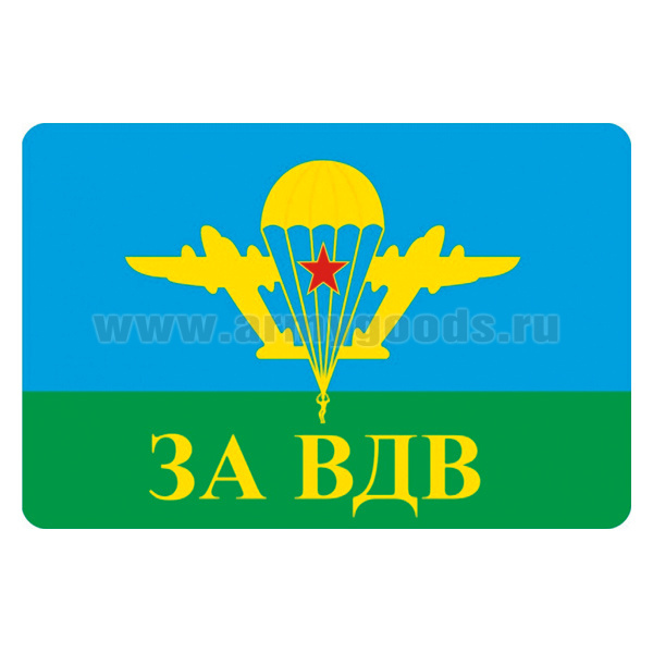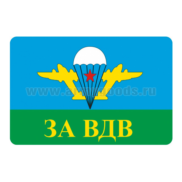 Наклейка прямоугольная (8x12 см) За ВДВ (эмблема с белым куполом)