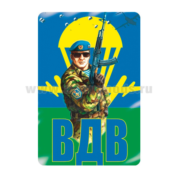 Наклейка прямоуг (8x12 см) ВДВ (десантник на фоне желтой эмблемы)