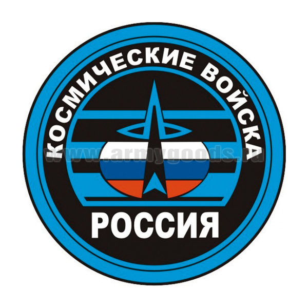 Наклейка круглая (d=10 см) Космические войска России (Достоверность, надежность, оперативность)
