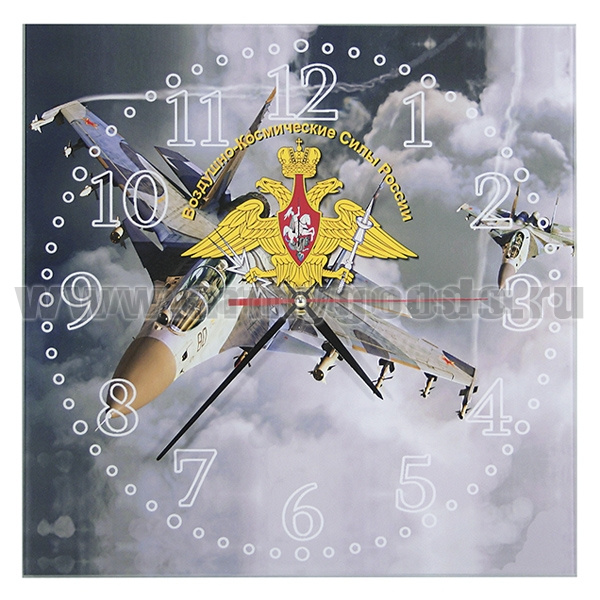 Часы настенные стеклянные Воздушно-космические силы России (28x28 см)