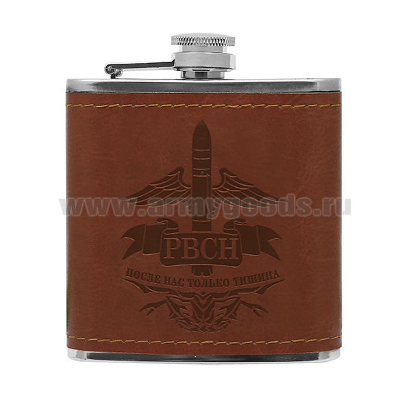 Фляга (нерж. сталь) с тиснением на коже РВСН После нас только тишина (6 oz (180 мл)