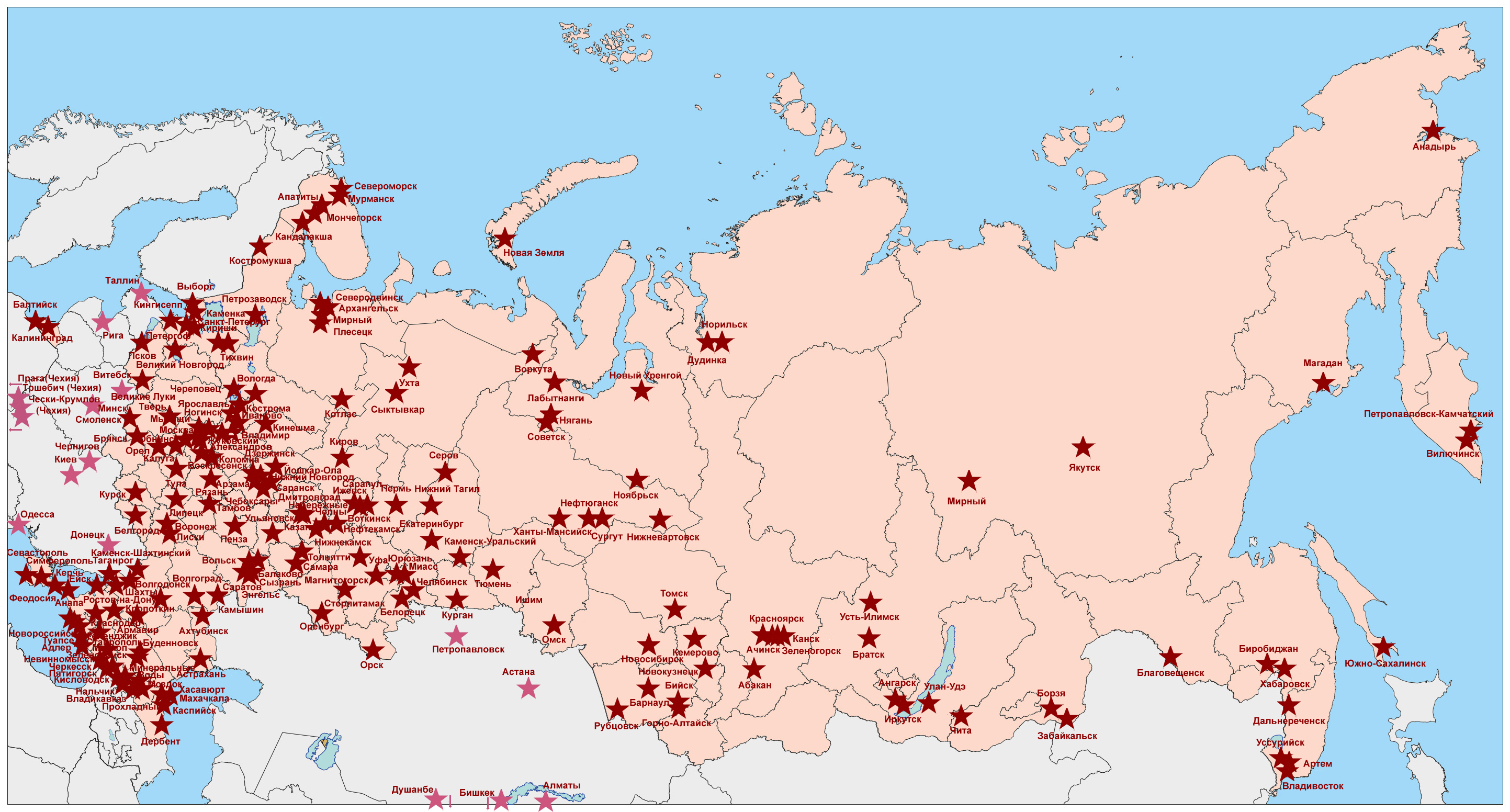 Наши клиенты на карте России и ближнего зарубежья