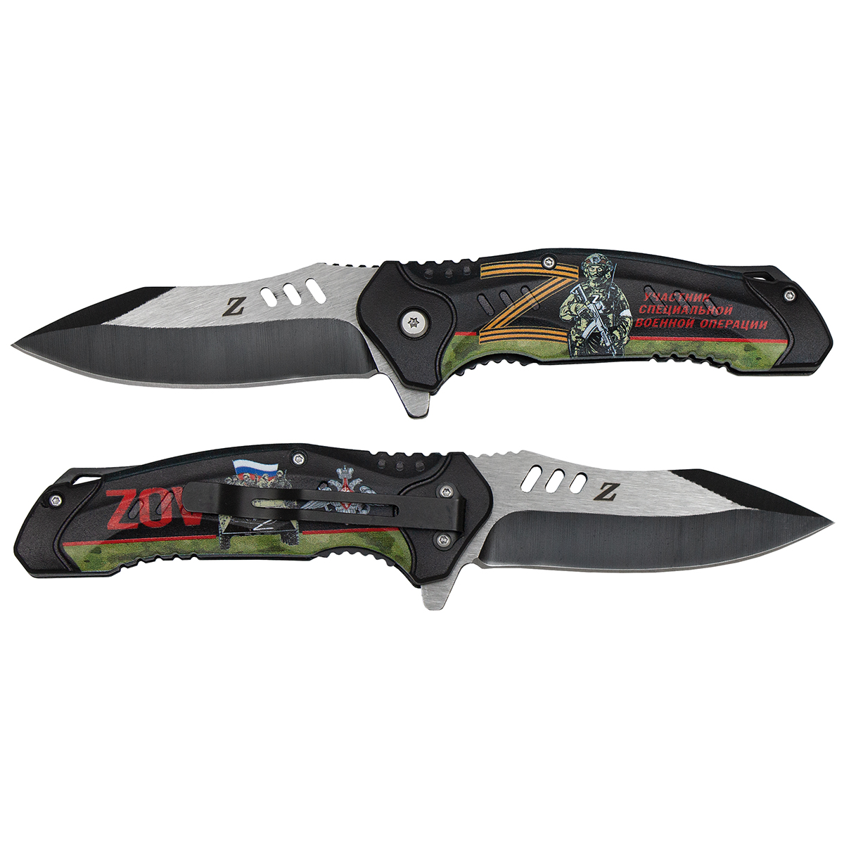 Нож раскладной Участник СВО (черный) общая длина 21 см