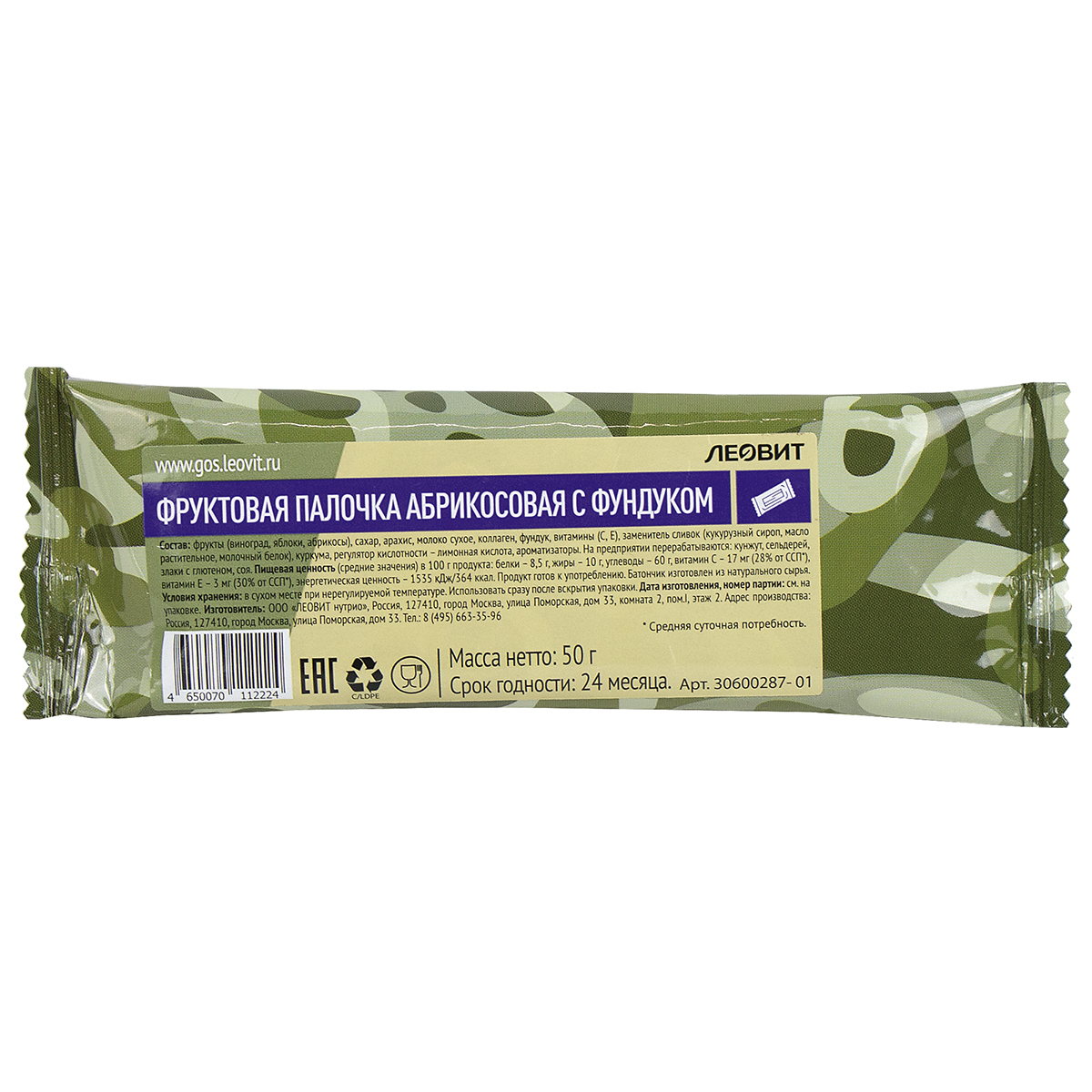 Фруктовая палочка Абрикосовая с фундуком (50 г)
