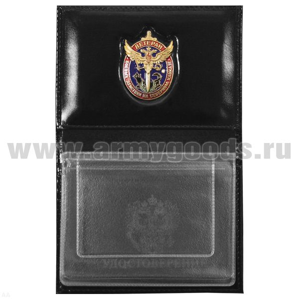 Обложка-книжка кожаная под автодокументы со значком Ветеран боевых действий на Cеверном Кавказе
