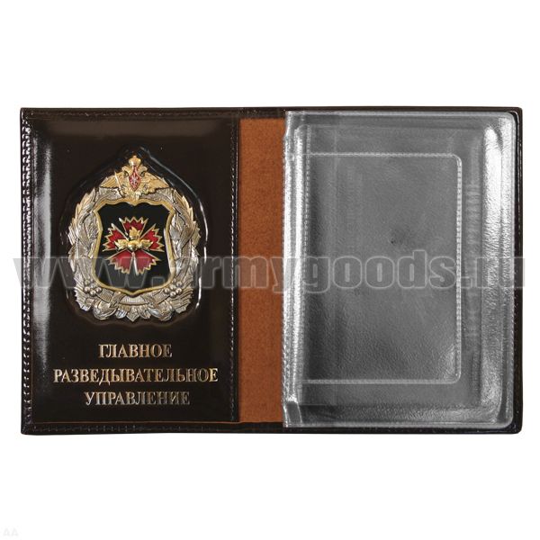 Обложка-книжка кожаная под автодокументы со значком ГРУ МО РФ