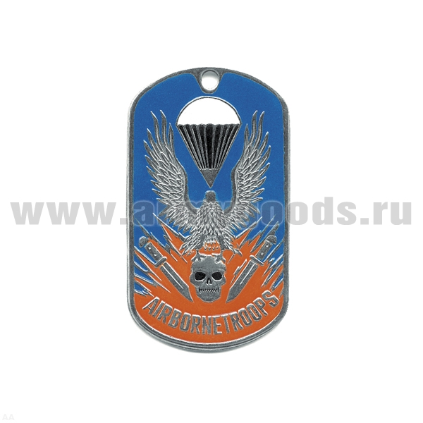 Жетон (нерж. ст., эмал.) Air borne troops (орел, парашют и череп)