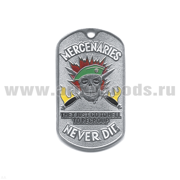 Жетон (нерж. ст., эмал.) Mercenaries never die (череп в оливк. берете)