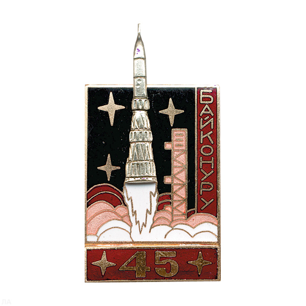 Значок мет. Байконуру 45 (серия Байконур с ракетой) черный, гор. эм.