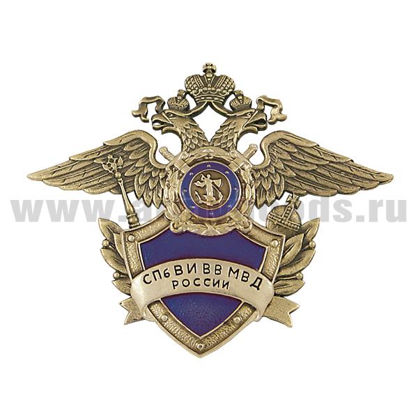Значок мет. СПб ВИ ВВ МВД России (золотой орел, синяя эмаль)