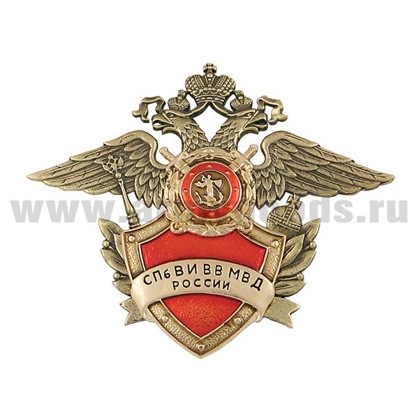 Значок мет. СПб ВИ ВВ МВД России (золотой орел, красная эмаль)