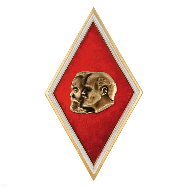 Значок мет. Университет марксизма-ленинизма (ромбик с профилями Ленина и Маркса на красном фоне)
