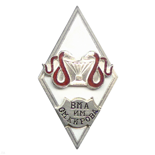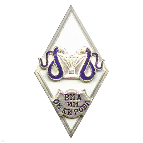 Значок мет. Ромб ВМА им. Кирова (чаша со змеями) син., гор. эм.
