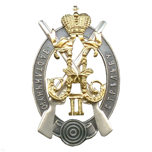 Значок мет. За отличную стрельбу (с вензелем Николая II) серебряный